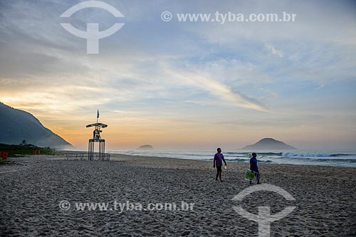Amanhecer na Praia de Grumari antes do início da etapa brasileira do WSL (Liga Mundial de Surfe) WSL Oi Rio Pro 2016 com cinegrafista ao fundo - Rio de Janeiro - Rio de Janeiro (RJ) - Brasil
