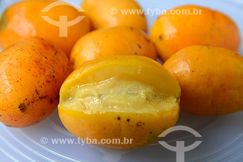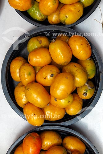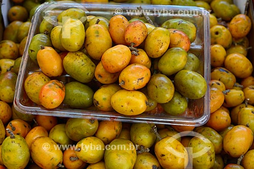 •  Detalhe do fruto da seriguela (Spondias purpurea) à venda em feira livre  - Rio de Janeiro - Rio de Janeiro (RJ) - Brasil