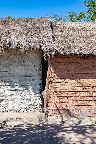 Kijeme, nome Pataxó para oca - feita de cobertura de piaçava e paredes de argila e pau a pique - Reserva Pataxó da Jaqueira - Porto Seguro - Bahia (BA) - Brasil