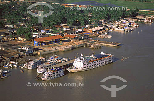 •  Imagem aérea do porto de Santana - área de navios de passageiros como o Comandante Solon (maior) e o terminal hidroviário (em fase final de construção) - AP - março de 2000.  - Amapá - Brasil