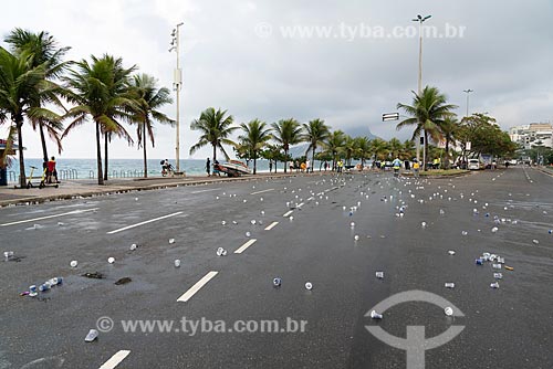 Detalhe de copos de água deixados na Avenida Vieira Souto após a Meia Maratona Internacional do Rio de Janeiro - Rio de Janeiro - Rio de Janeiro (RJ) - Brasil