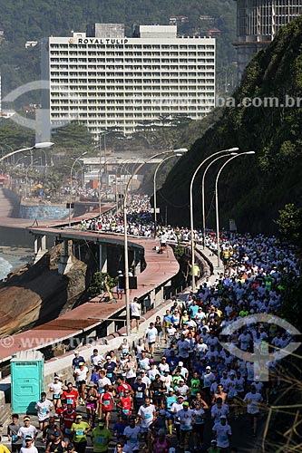 •  Atletas na Avenida Niemeyer durante a Meia Maratona Internacional do Rio de Janeiro com o Royal Tulip Rio de Janeiro Hotel ao fundo  - Rio de Janeiro - Rio de Janeiro (RJ) - Brasil