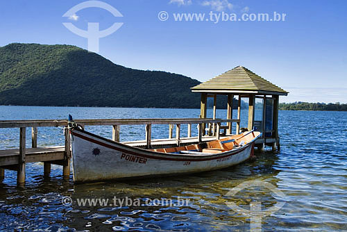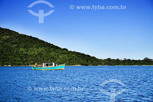Barco na costa da lagoa - Lagoa da Conceição - Florianópolis - SC - Brasil - Florianópolis - Santa Catarina - Brasil