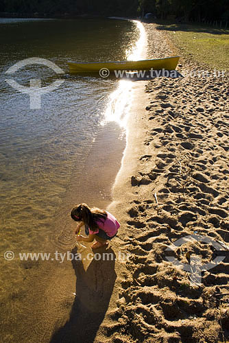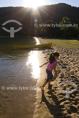 •  Menina brincando em praia na costa da lagoa - Lagoa da Conceição - Florianópolis - SC - Brasil  - Florianópolis - Santa Catarina - Brasil