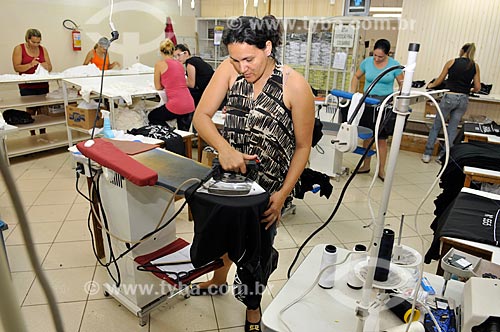 •  Passadeira trabalhando na produção de roupas  - Ibirá - São Paulo - Brasil