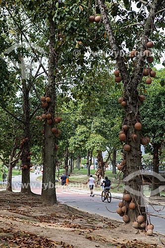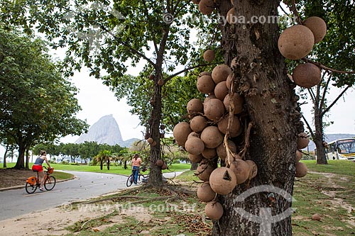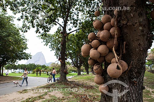 Assunto: Abricó-de-Macaco (Couroupita guianensis) - também conhecida como Macacarecuia - no Aterro do Flamengo com o Pão de Açúcar ao fundo / Local: Flamengo - Rio de Janeiro (RJ) - Brasil / Data: 08/2013