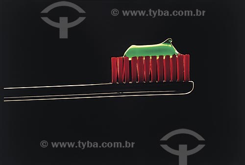 Assunto: Detalhe de creme dental em escova de dente / Local: Estúdio / Data: 09/2002