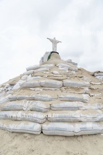 Escultura de areia do artista Rogean Rodrigues representando o Cristo Redentor - Praia de Copacabana - Rio de Janeiro - Rio de Janeiro (RJ) - Brasil