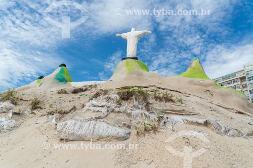Escultura de areia representando o Cristo Redentor - Praia de Copacabana - Rio de Janeiro - Rio de Janeiro (RJ) - Brasil