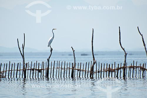 Assunto: Garça sobre curral , como é conhecida a técnica para pesca de peixes na fundo da Baía de Guanabara, proximo a São Gonçalo. / Local: Rio de Janeiro - Rio de Janeiro (RJ) - Brasil / Data: Fevereiro de 2010