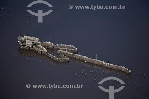 Assunto: Vista aérea de curral de peixes na Baía de Guanabara / Local: Rio de Janeiro (RJ) - Brasil / Data: 03/2012