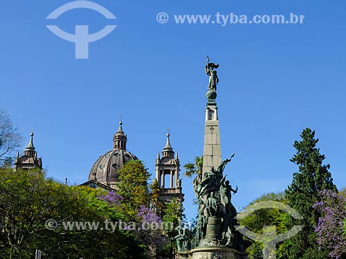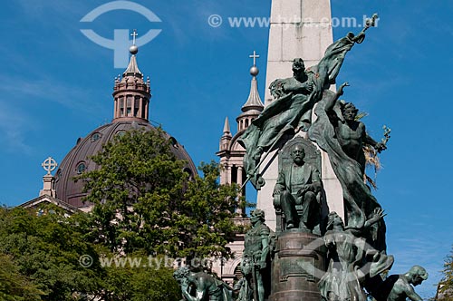 •  Assunto: Monumento Júlio de Castilhos com cúpula da Catedral Metropolitana de Porto Alegre ao fundo - Praça da Matriz / Local: Porto Alegre - Rio Grande do Sul (RS) - Brasil / Data: 05/2012