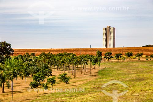 Árvores do Parque Olhos DÁgua com condomínio residencial ao fundo - Ribeirão Preto - São Paulo (SP) - Brasil