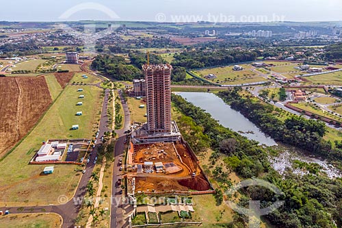 •  Foto feita com drone do Parque Olhos DÁgua - à esquerda - com condomínio residencial  - Ribeirão Preto - São Paulo (SP) - Brasil