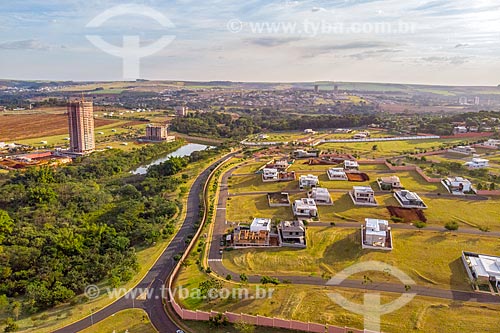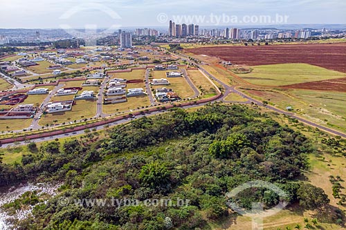 Foto feita com drone do Parque Olhos DÁgua com condomínio residencial - Ribeirão Preto - São Paulo (SP) - Brasil