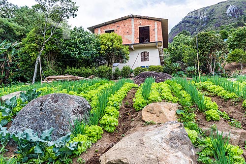 Plantio consorciado de alface e cebolinha na zona rural da cidade de Petrópolis - Petrópolis - Rio de Janeiro (RJ) - Brasil