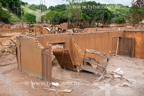 Ruína de casa no distrito de Paracatu de Baixo após o rompimento de barragem de rejeitos de mineração da empresa Samarco em Mariana (MG) - Mariana - Minas Gerais (MG) - Brasil