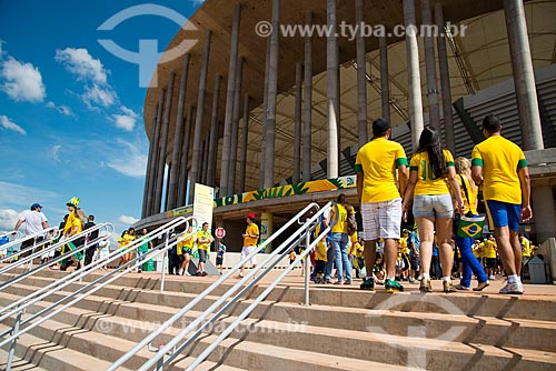 •  Assunto: Torcedores chegando para o jogo entre Brasil x Japão - pela abertura da Copa das Confederações - no Estádio Nacional de Brasília Mané Garrincha (1974) / Local: Brasília - Distrito Federal (DF) - Brasil / Data: 06/2013