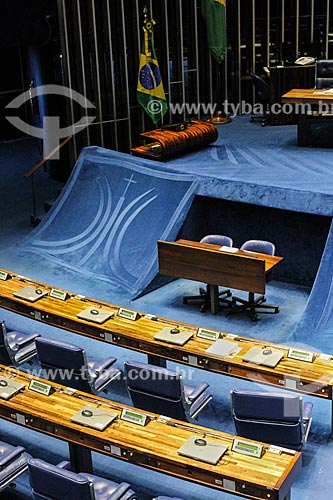 •  Assunto: Detalhe da bancada do plenário do Senado Federal / Local: Brasília - Distrito Federal (DF) - Brasil / Data: 08/2013