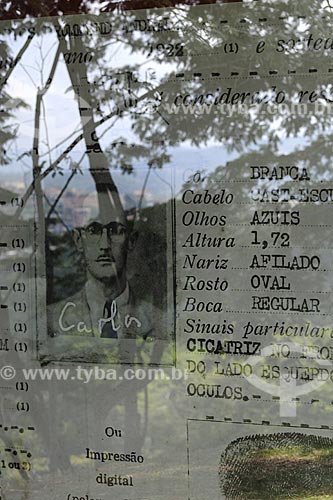 •  Assunto: Documento de identidade do poeta Carlos Drummond de Andrade com reflexo da cidade de Itabira - Reprodução de foto do Acervo do Memorial Carlos Drummond de Andrade / Local: Itabira - Minas Gerais - Brasil / Data: 25/04/2009