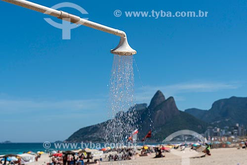 Chuveiro na orla da Praia de Ipanema com o Morro Dois Irmãos ao fundo - Rio de Janeiro - Rio de Janeiro (RJ) - Brasil