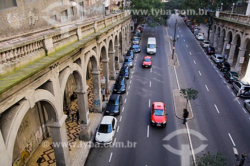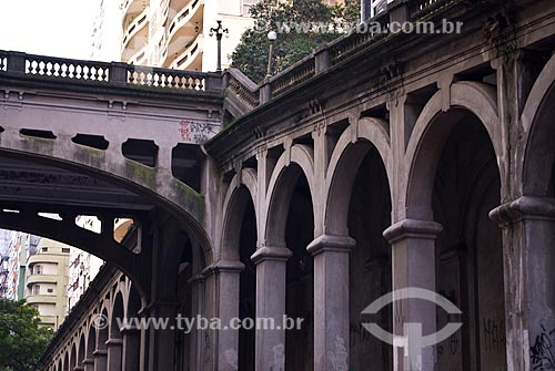 •  Assunto: Detalhe do Viaduto Otávio Rocha (1932) sobre a Avenida Borges de Medeiros / Local: Porto Alegre - Rio Grande do Sul (RS) - Brasil / Data: 03/2014