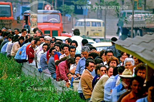 •  Assunto: Operários em busca de emprego na fábrica da Volkswagem na região do ABC Paulista / Local: São Paulo (SP) - Brasil / Data: 1983