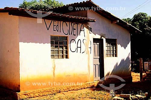 Casa modesta com anúncio com erro de português