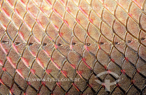 •  Assunto: Detalhe da escama de pirarucu (Arapaima gigas) / Local: Maraã - Amazonas (AM) - Brasi / Data: 11/2013