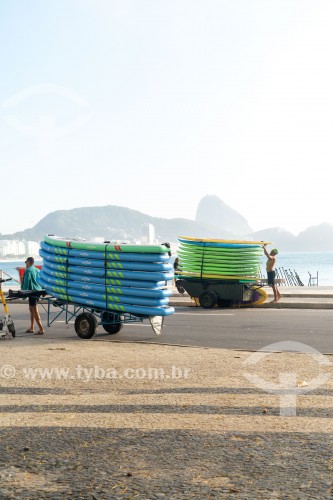 Pranchas de stand up paddle em carrinho de burro-sem-rabo no calçadão da Praia de Copacabana - Rio de Janeiro - Rio de Janeiro (RJ) - Brasil