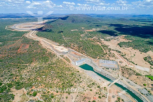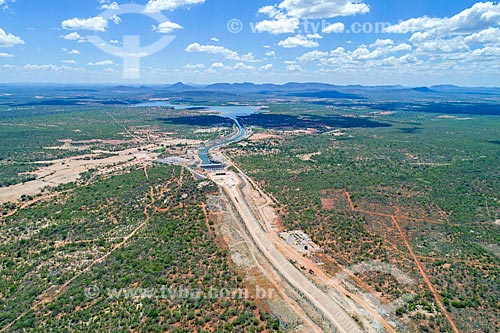 Foto feita com drone do reservatório da UBI 1 do Projeto de Integração do Rio São Francisco com as bacias hidrográficas do Nordeste Setentrional - eixo leste - Cabrobó - Pernambuco (PE) - Brasil
