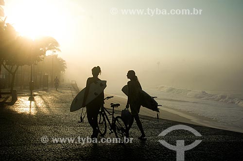 •  Surfistas caminhando pela calçada da Praia do Arpoador  - Rio de Janeiro - Rio de Janeiro (RJ) - Brasil