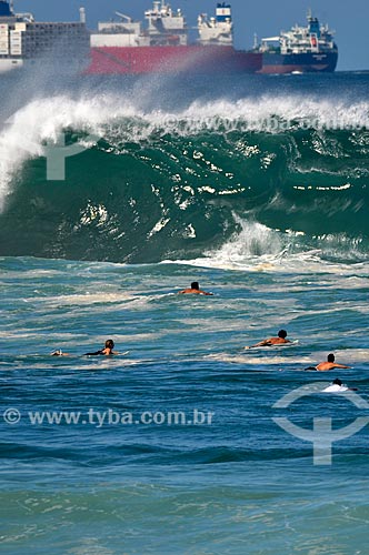 •  Surfistas na Praia do Arpoador com navios cargueiros ao fundo  - Rio de Janeiro - Rio de Janeiro (RJ) - Brasil