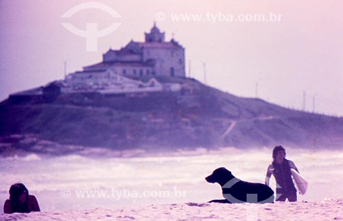 Praia de Itaúna com Igreja de Nossa Senhora de Nazaré ao fundo - Saquarema - Rio de Janeiro (RJ) - Brasil