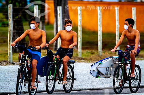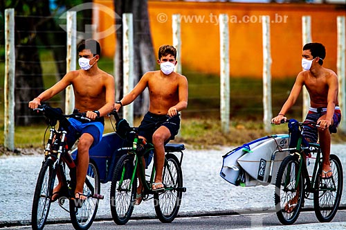 •  Adolecentes indo a praia de máscara durante a crise do Coronavírus  - Rio de Janeiro - Rio de Janeiro (RJ) - Brasil