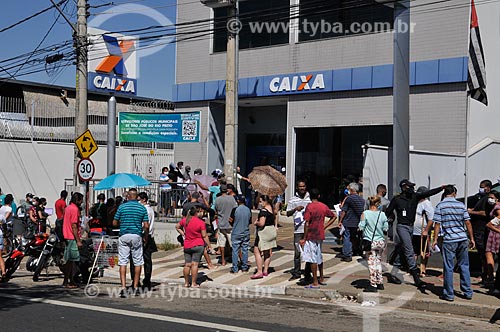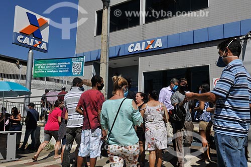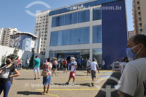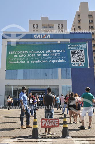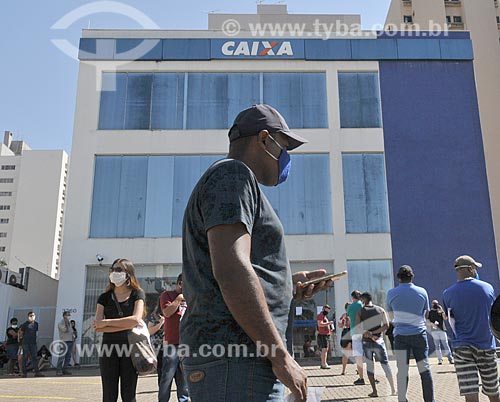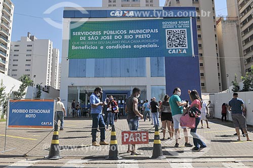 •  Fila em frente à agência da Caixa Econômica Federal para receber auxílio emergencial do governo - Crise do Coronavírus  - São José do Rio Preto - São Paulo (SP) - Brasil