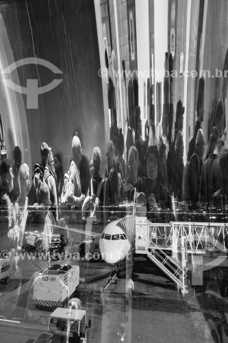 • Reflexo no vidro da fila de passageiros para embarque no avião - Aeroporto Internacional de São Paulo-Guarulhos Governador André Franco Montoro - Guarulhos - São Paulo (SP) - Brasil