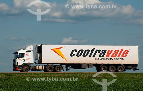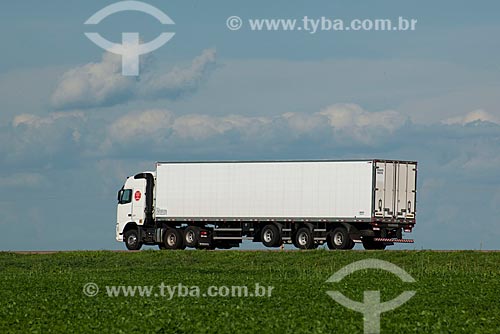 Assunto: Caminhão frigorífico passando em plantação de soja - Trecho da Rodovia BR - 153 / Local: Rondonópolis - Mato Grosso (MT) - Brasil / Data: 12/2011