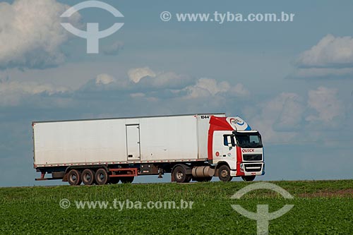 •  Assunto: Caminhão frigorífico passando em plantação de soja - Trecho da Rodovia BR - 153  / Local: Rondonópolis - Mato Grosso (MT) - Brasil / Data: 12/2011