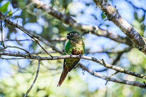 Detalhe de tiriba-de-testa-vermelha (Pyrrhura frontalis) - também conhecido como tiribinha, fura-mato, periquito-tapuia ou cara-suja - Rio de Janeiro - Rio de Janeiro (RJ) - Brasil
