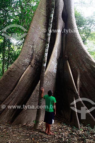 •  Assunto: Criança observa arvore Samaúma (Ceiba pentandra) localizada na beira do Rio Ariaú / Local: Amazonas (AM) - Brasil / Data: 09/2013