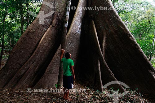 Assunto: Homem observa arvore Samaúma (Ceiba pentandra) localizada na beira do Rio Ariaú / Local: Amazonas (AM) - Brasil / Data: 09/2013