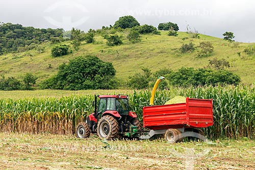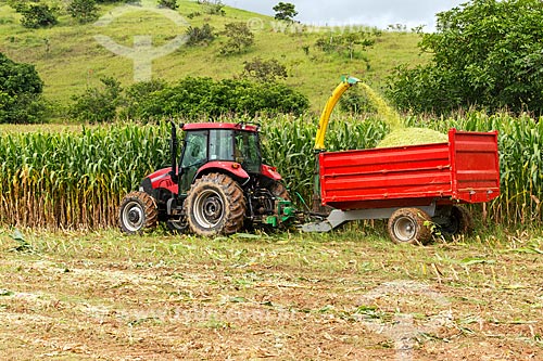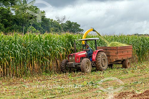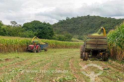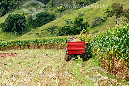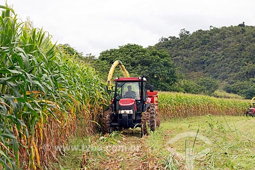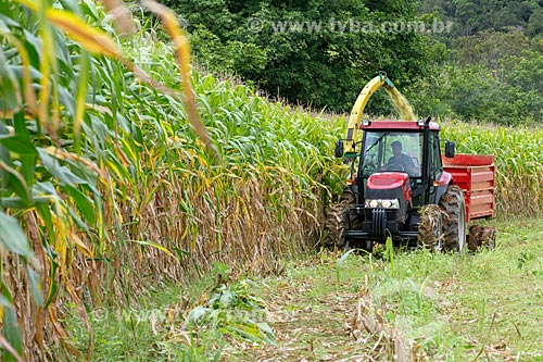 Colheita mecanizada de milho transgênico - para silagem e alimentação de gado - na zona rural da cidade de Guarani - Guarani - Minas Gerais (MG) - Brasil