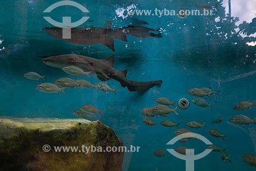 Tubarão-enfermeiro (Ginglymostoma cirratum) - também conhecido como Tubarão-lixa ou Lambaru - no aquário do Projeto TAMAR - Mata de São João - Bahia (BA) - Brasil