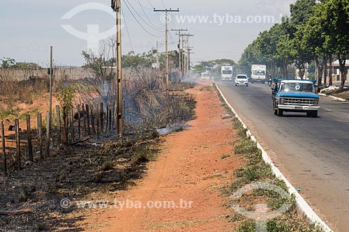 Incêndio às margens da Avenida Perimetral Norte (GO-070) durante o período de seca - Goiânia - Goiás (GO) - Brasil