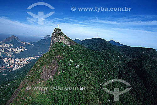 •  Cristo Redentor sobre o Morro do Corcovado com o Hipódromo da Gávea no canto esquerdo da foto e o Morro Dois Irmãos e a Pedra da Gávea ao fundo também à esquerda do Cristo - Rio de Janeiro - RJ - Brasil  /  Data: 2004