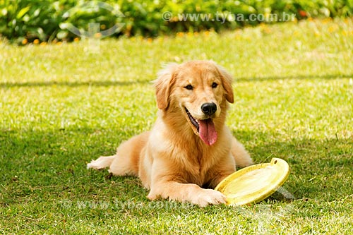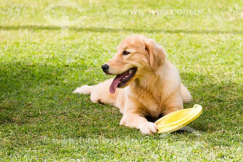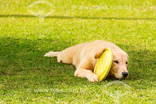 •  Cão golden retriever brincando com frisbee  - Guarani - Minas Gerais (MG) - Brasil