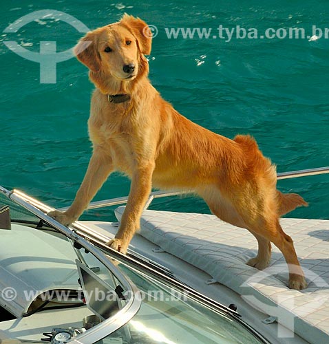 •  Assunto: Cão sobre para-brisa de uma lancha na Marina Village Sea Wall / Local: Abu Dhabi - Emirados Árabes Unidos - Ásia / Data: 01/2012