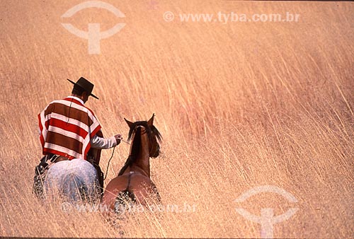 •  Cavaleiro gaúcho com traje típicos em coxilhas dos campos sulinos  - Rio Grande do Sul (RS) - Brasil