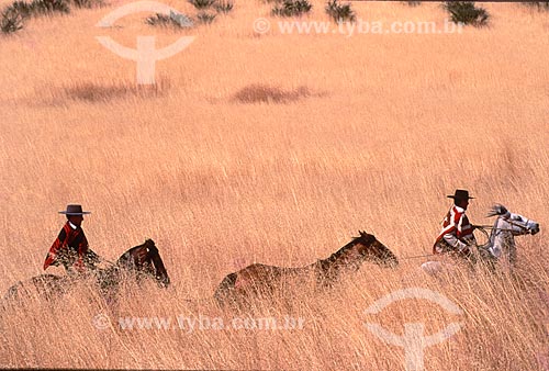 • Gaúcho em traje tí­pico conduzindo gado - Alegrete - Rio Grande do Sul (RS) - Brasil